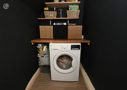 Tile floor, power points, plumbed for washing machine.