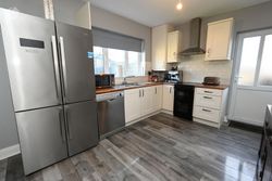 Timber floor, floor and eye level fitted units, tile splash-back, radiator, access to rear.